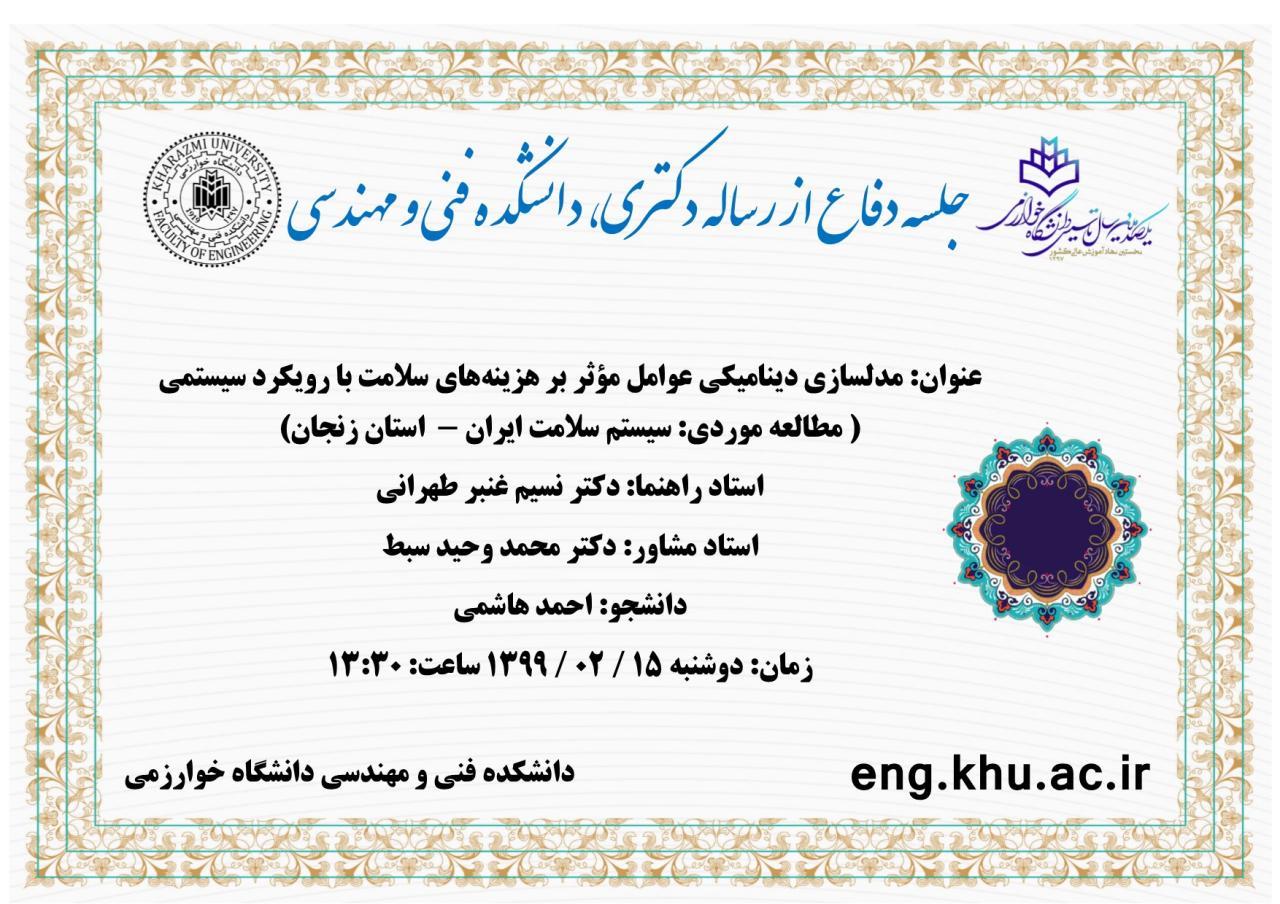 دفاعیه پایان نامه دکتری مدلسازی دینامیکی عوامل موثر بر هزینه های سلامت با رویکرد سیستمی